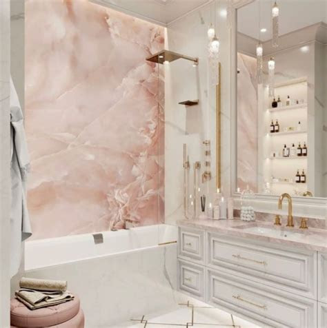There are several ways to incorporate pink marble into your bathroom design to create a stunning and luxurious space: